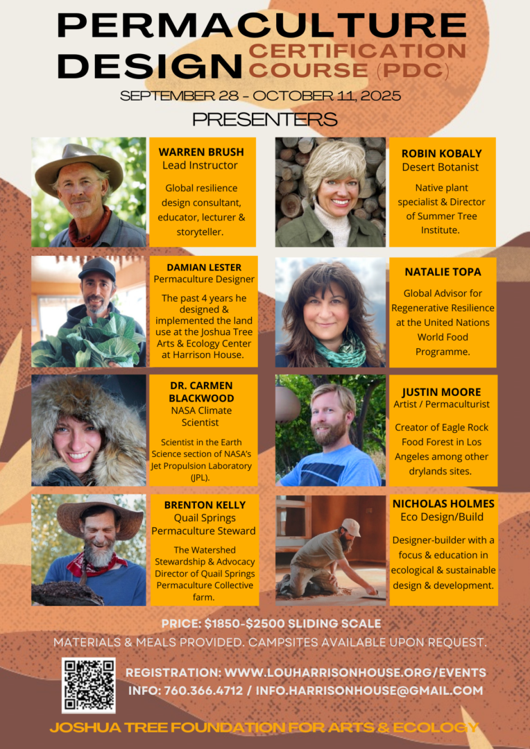 That’s according to Warren Brush, a global resilience design consultant, educator, lecturer, and storyteller who helped lead an “Intro to Permaculture” weekend workshop at the Joshua Tree Foundation for Arts and Ecology in Joshua Tree, Calif., on Dec. 6–8, 2024. The event provides a taste of a two-week permaculture design certification course (postponed to late September 2025) in the same location.